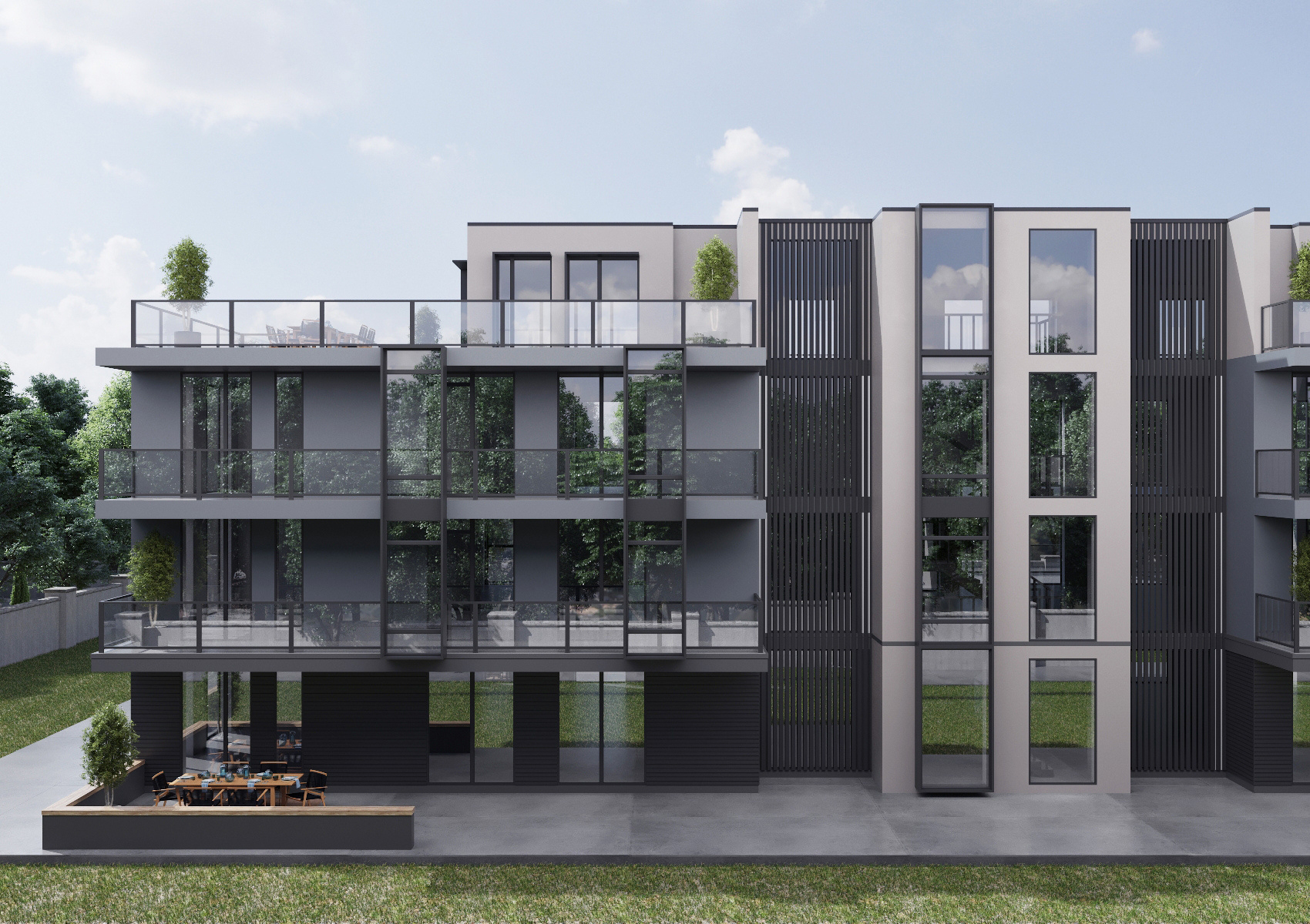 Жилой комплекс в строгом стиле с просторными квартирами.