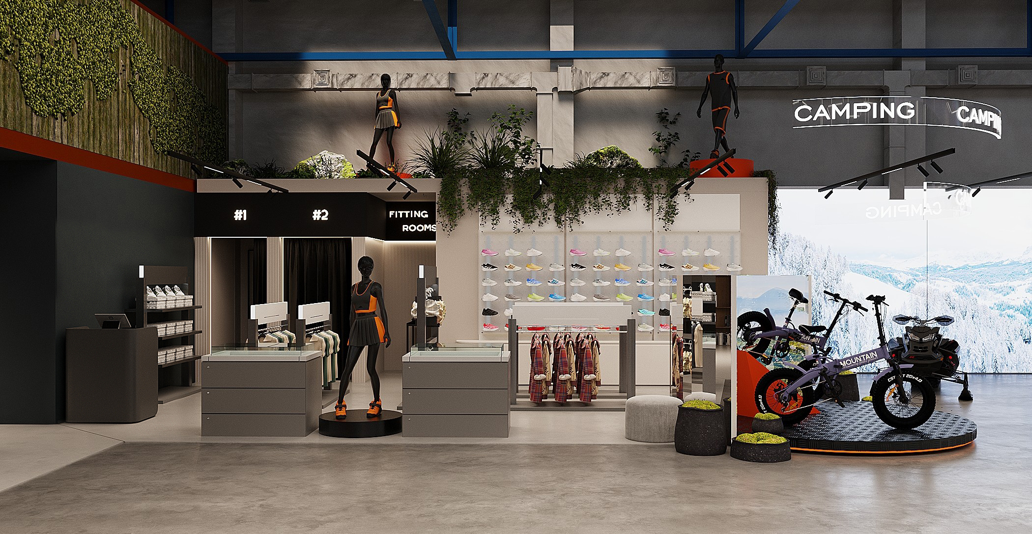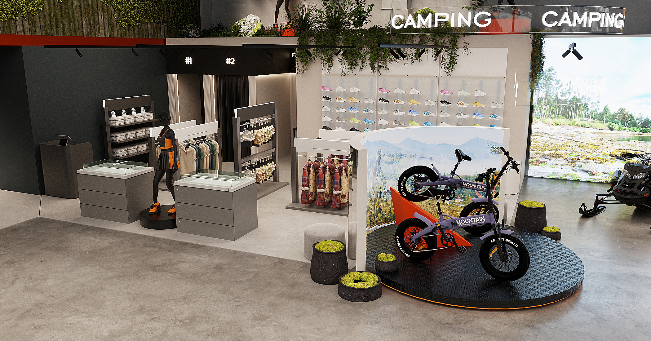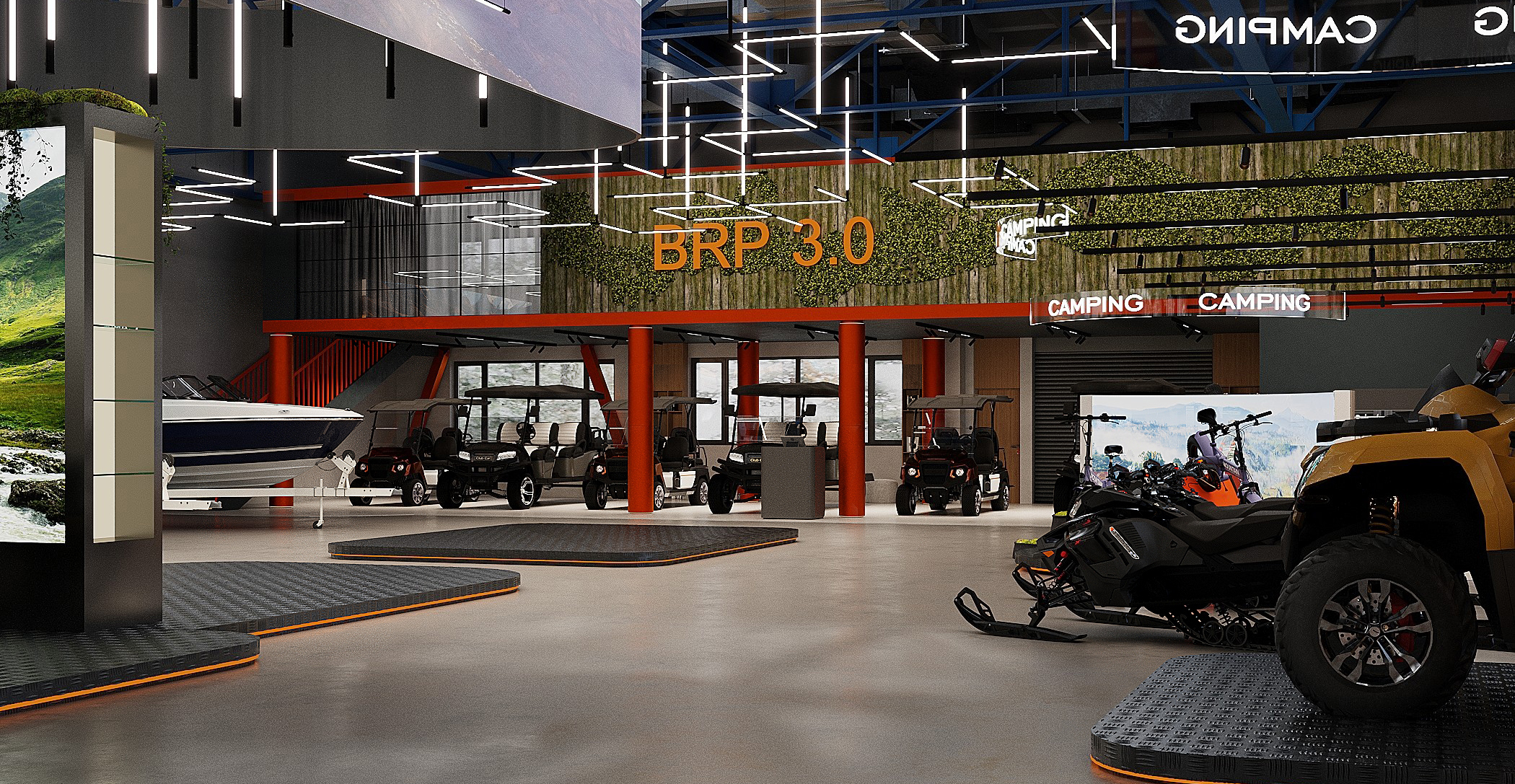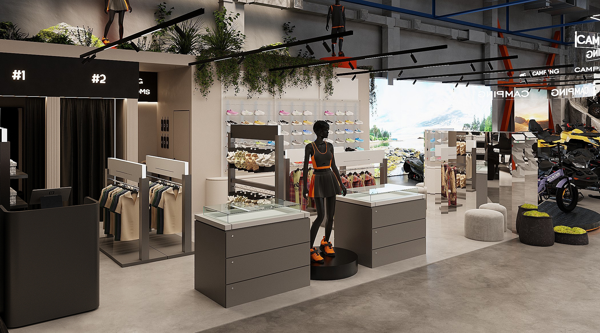 Мы спроектировали торговые площади нового магазина экстремального спорта. Помимо зон демонстрации техники, предусмотрен отдельный блок, посвящённый яхт-клубу