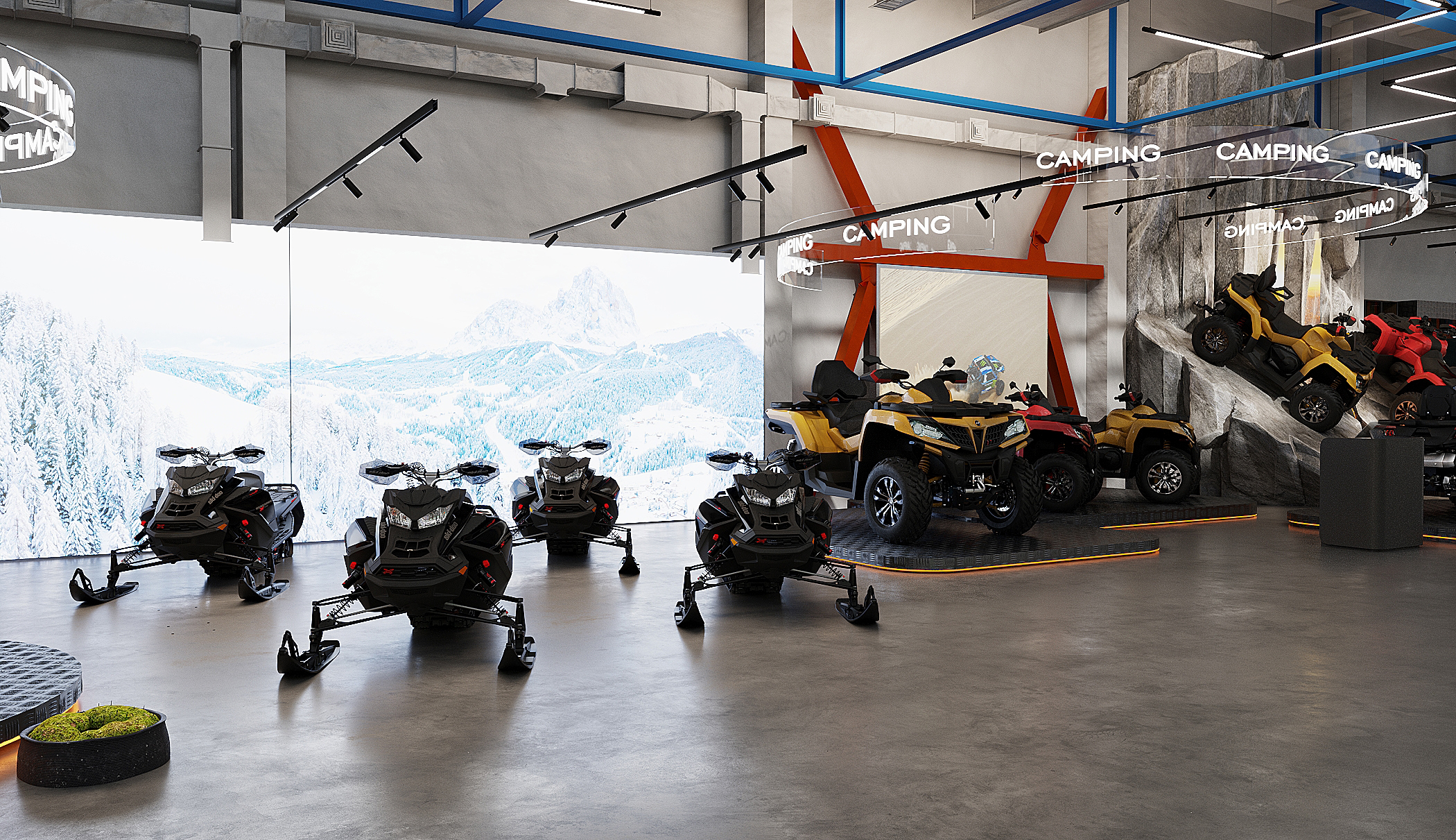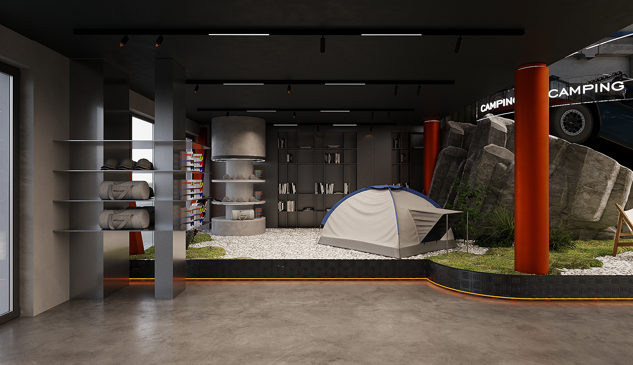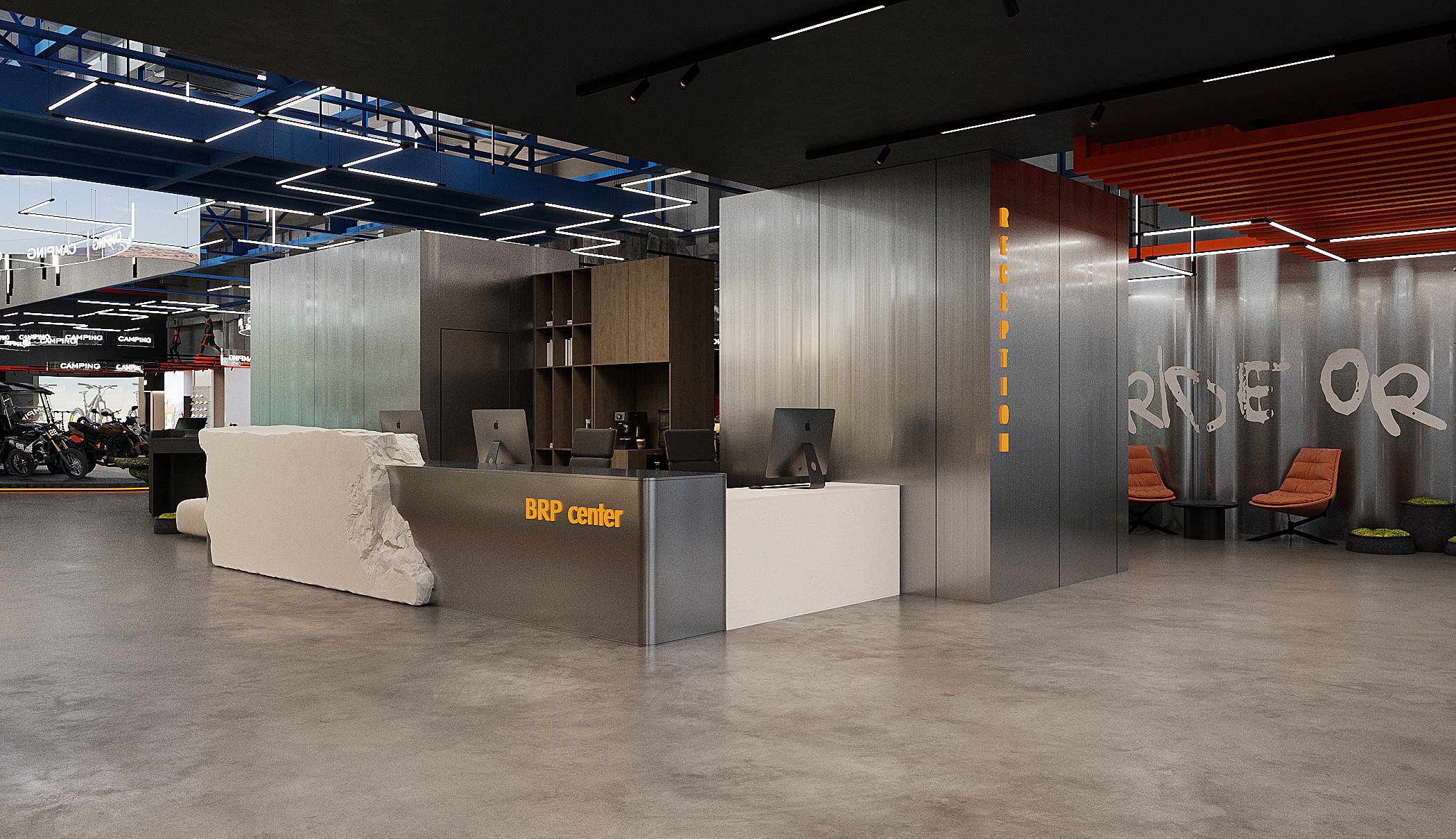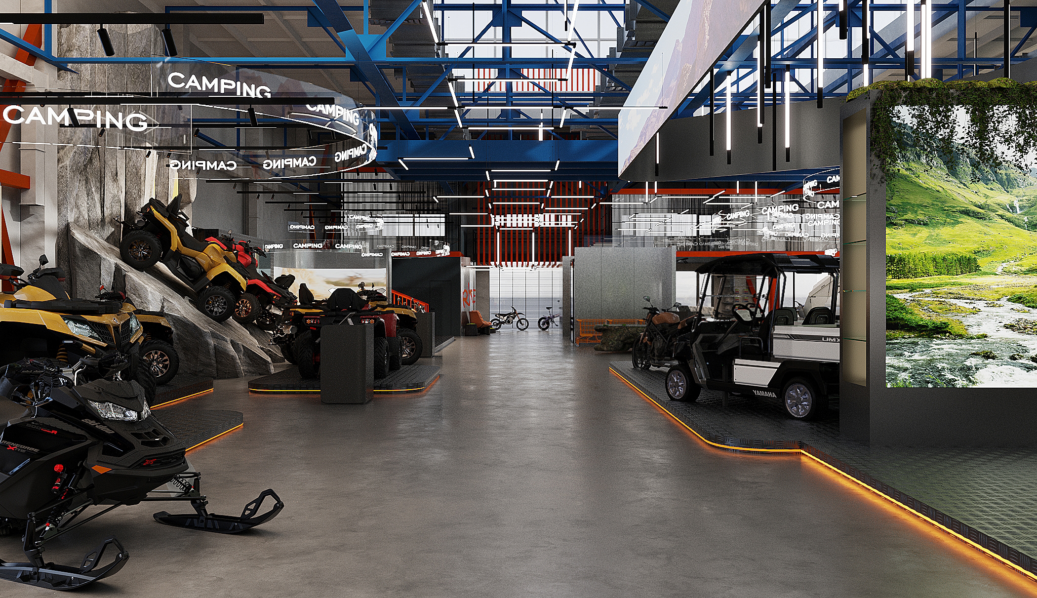 Мы спроектировали торговые площади нового магазина экстремального спорта. Помимо зон демонстрации техники, предусмотрен отдельный блок, посвящённый яхт-клубу