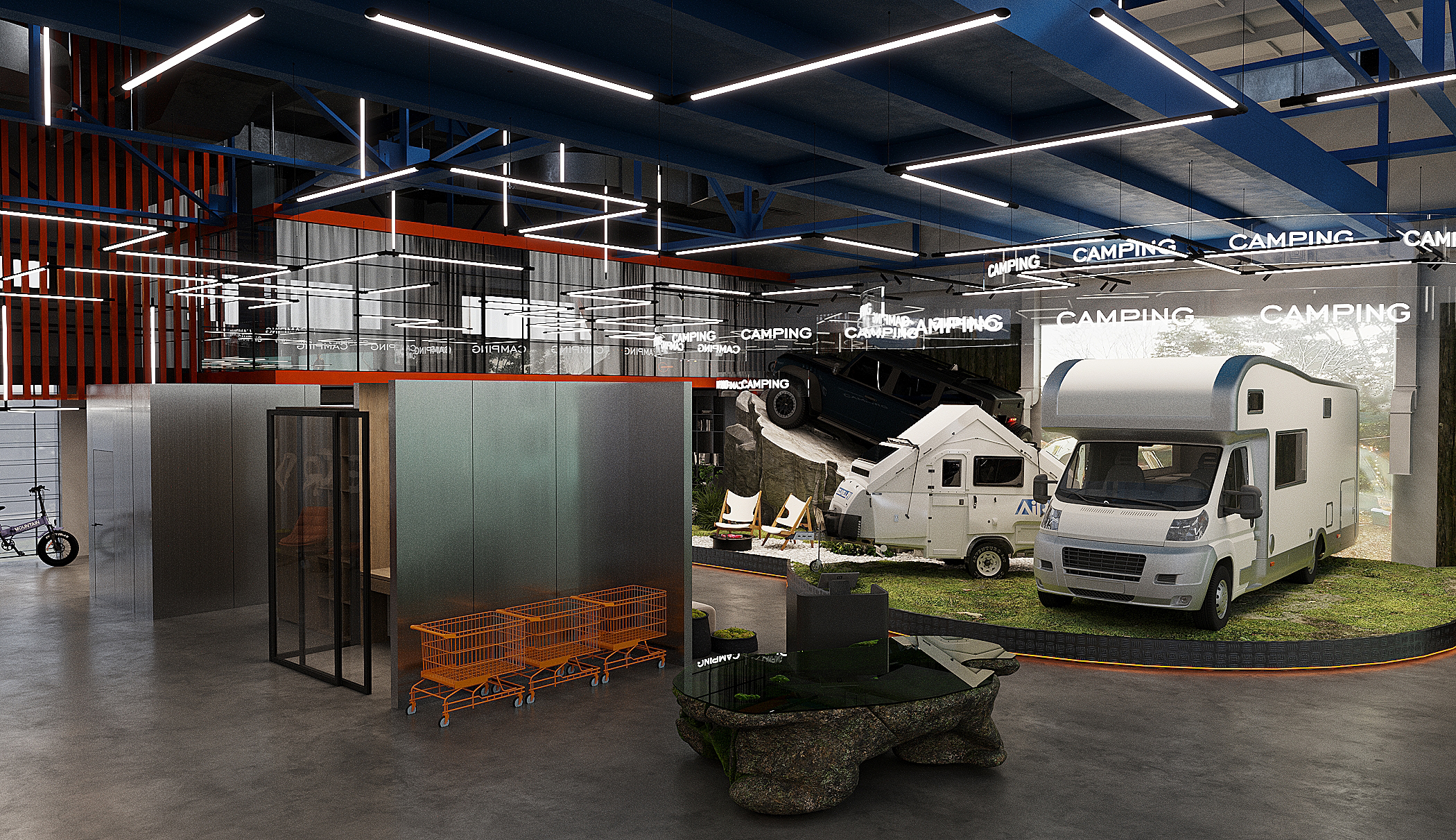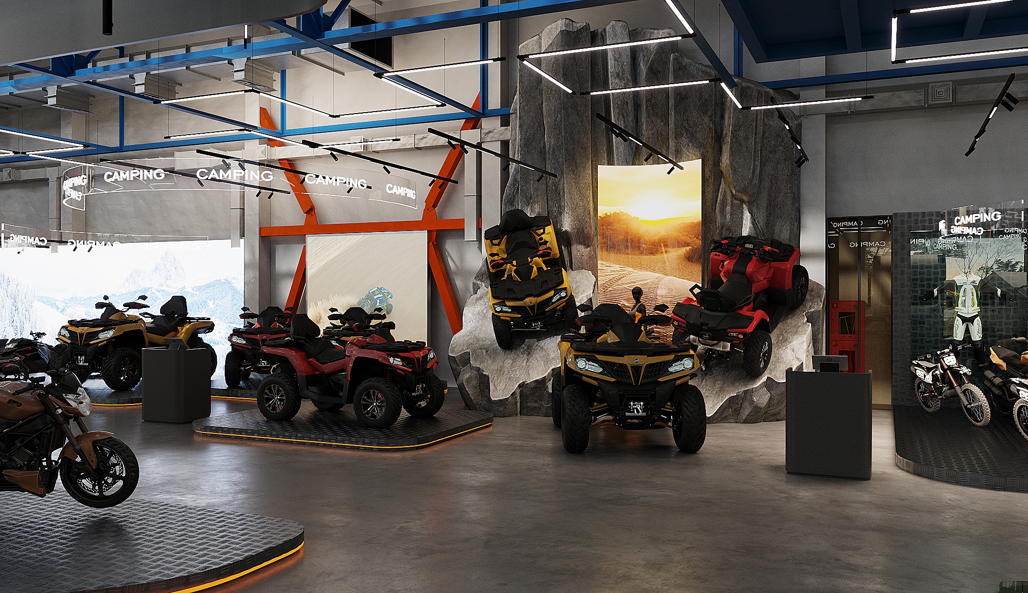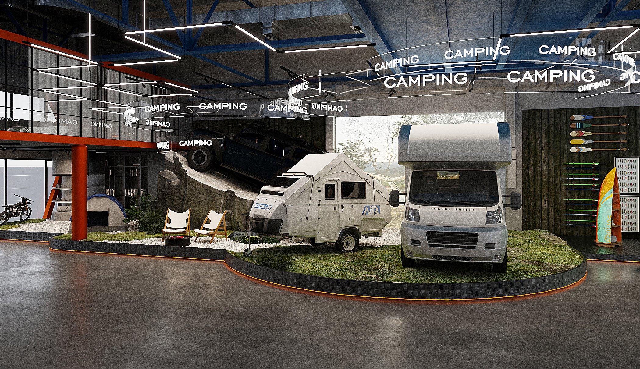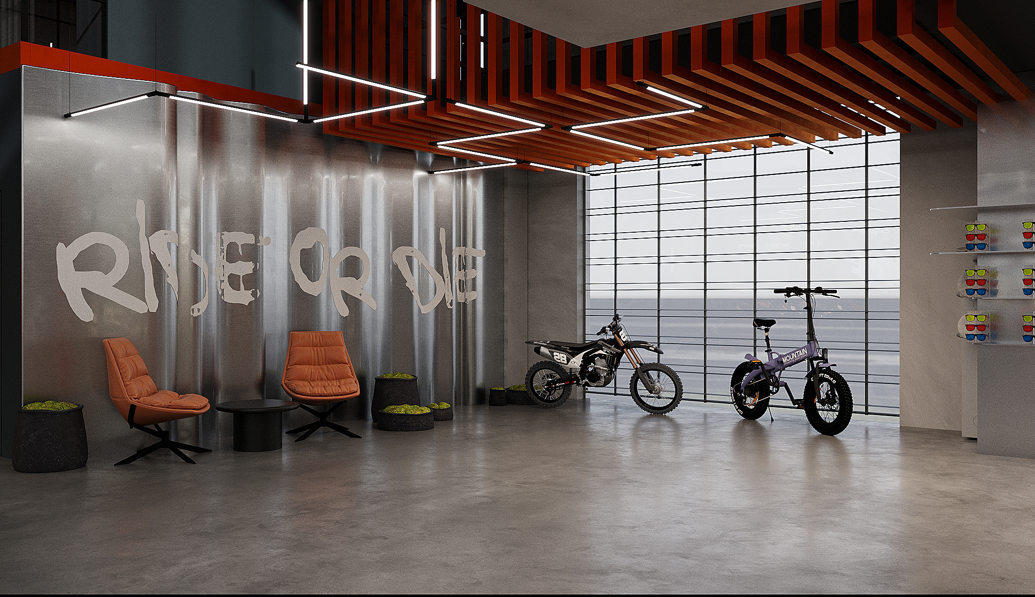 Мы спроектировали торговые площади нового магазина экстремального спорта. Помимо зон демонстрации техники, предусмотрен отдельный блок, посвящённый яхт-клубу