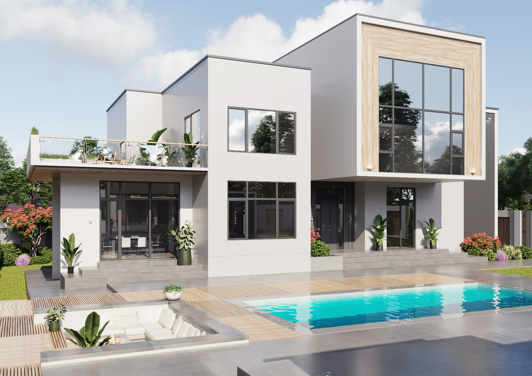 Современная вилла «с нуля»: от семейного барбекю у бассейна до торжеств в просторном зале.